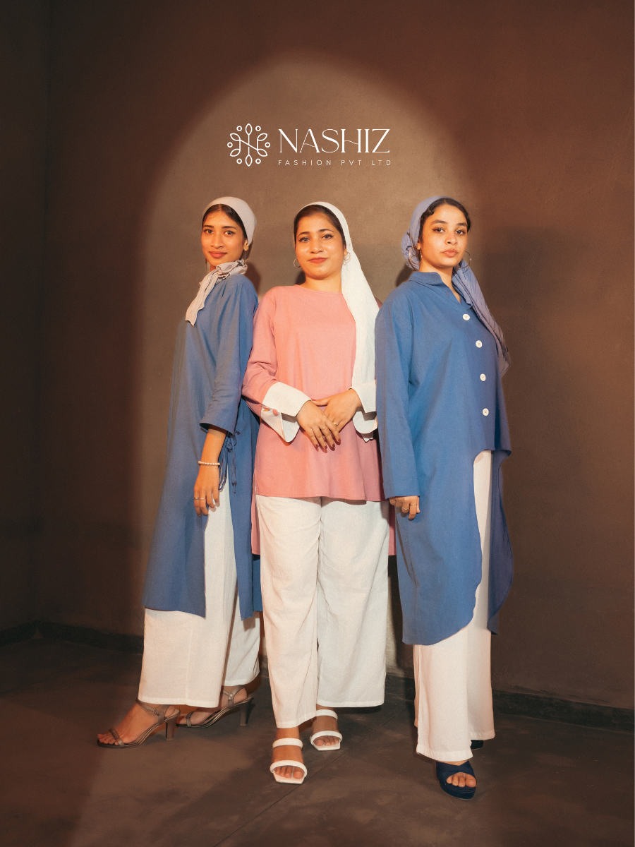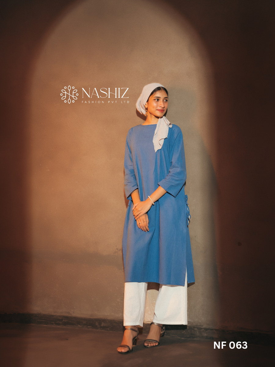 Blue Linen Long Top with Side Open Tie Material: Linen Product ID: NF 063 Color: Blue Garment Care: Hand wash for durability